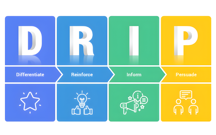Thay vì gửi một thông điệp lớn duy nhất, Drip Marketing hoạt động giống như “nhỏ giọt” – mỗi lần cung cấp một lượng thông tin vừa đủ để: