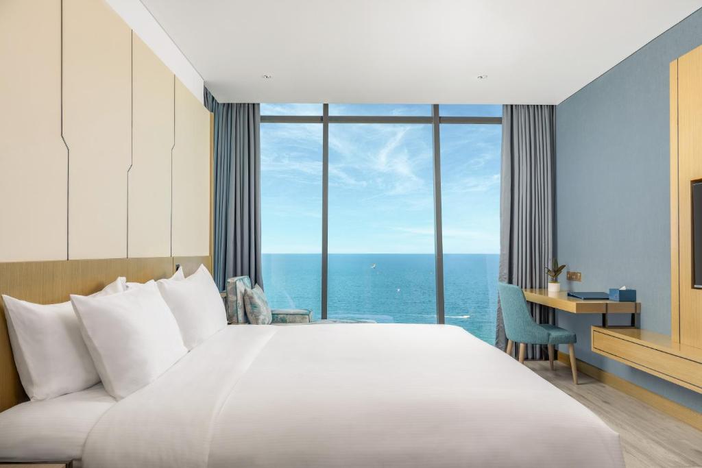 - Điểm nhấn: Hồ bơi vô cực, hồ bơi trong nhà, spa, gym, nhà hàng phục vụ thực đơn phong phú từ các món Mỹ, Việt Nam đến quốc tế. Bữa sáng buffet đa dạng.